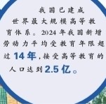 高校是发展科技第一生产力、培养人才第一资源、增强创新第一动力的结合点,高等教育发展水平是一个国家发展水平和发展潜力的重要标志。当前,我国已建成世界最大规模高等教育体系。2023年,全国共有高等学校3074所,高等教育毛入学率从2012年的30%提高至2023年的60.2%,高等教育进入了世界公认的普及化阶段。2024年,我国新增劳动力平均受教育年限超过14年,接受高等教育的人口达到2.5亿。此外,我国研发人员总量居世界首位,一批大学和一大批学科已经跻身世界先进水平。