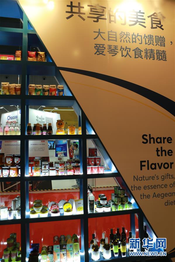 这是11月6日在第二届进博会希腊国家馆拍摄的希腊美食。 新华社记者王诺摄